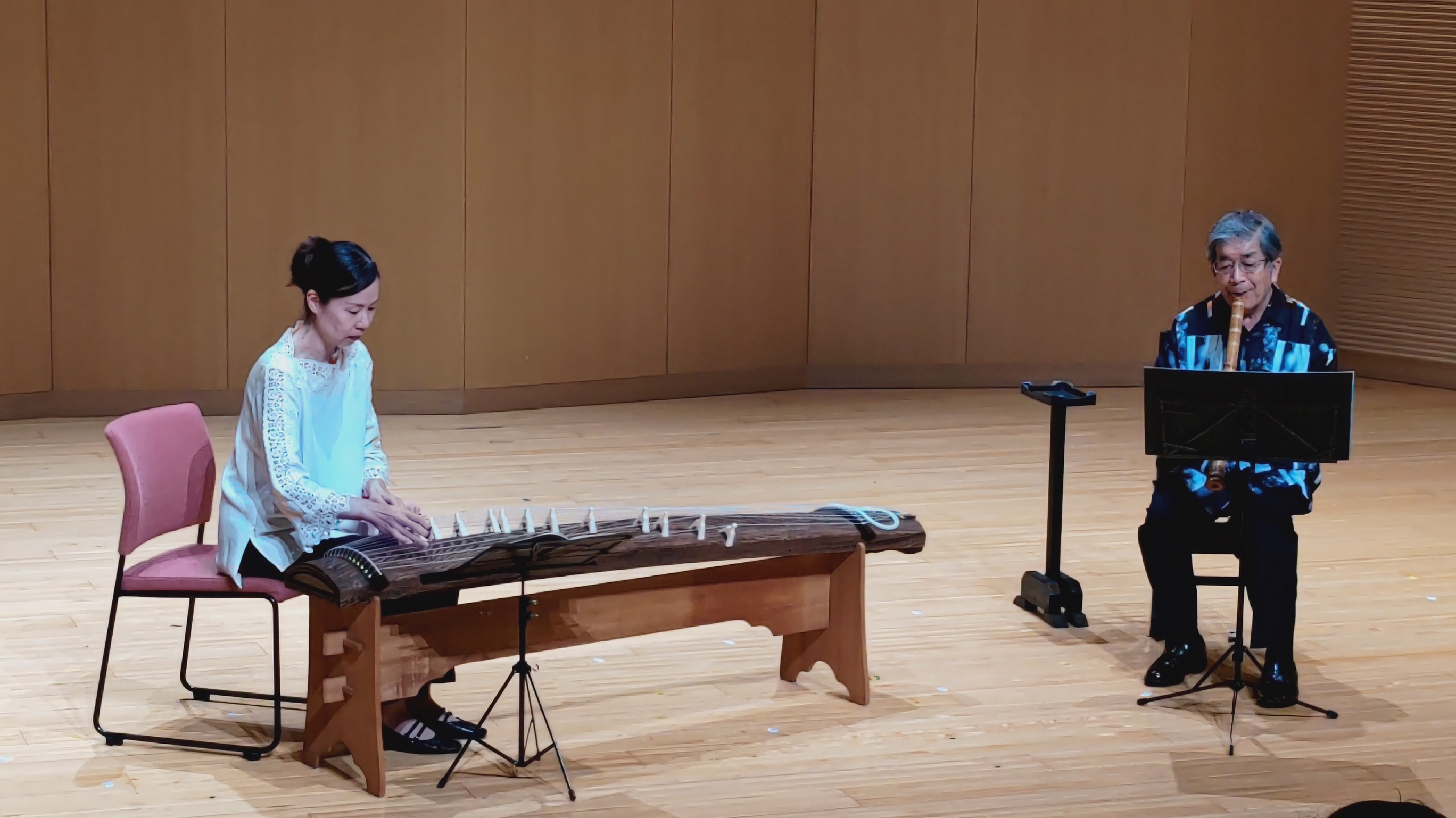 箏は、初心者でも熱心な方なら、1時間もあれば簡単な旋律を弾きこなす。そして日本の美を連想させる凛とした美しい響きが、その奏でる者を奥の深い世界へ導く。尺八は、初めは近寄り難いが付き合うと一生の友、そんな楽器だ。朗々とした低音からフルートと間違われるような高音まで、吹き手はその音色の虜となる。